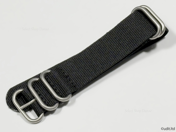 - ラグ幅24mm NATOストラップ リングタイプ ブラック 腕時計用ベルト ナイロン 時計用バンド