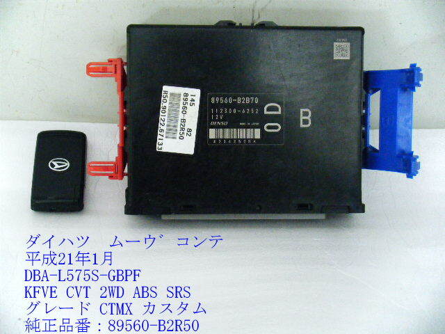 > ◆L575S ダイハツ ムーウ゛コンテ エンジンコンピューター スマートキー付 ECU KFVE CVT 2WD 89560-B2R50 [13974]