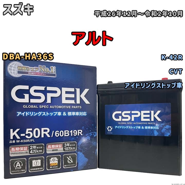 > アルト K-42R互換バッテリー W-K50RPL アイドリングストップ/充電制御車用 DBA-HA36S 平成26年12月~令和2年10月 GSPEK 48