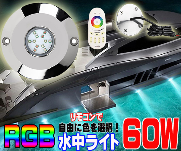 - 取寄 LED水中ライト リモコンで色が変わる(2台セット)RGB 60W マリンライトDC12V用 CREEステンレスsus316 完全防水