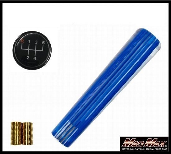 - MADMAX トラック用品 レトロ ストライプシフトノブ 200mm ブルーライン いすゞ 07エルフ用/変換アダプター付【送料800円】