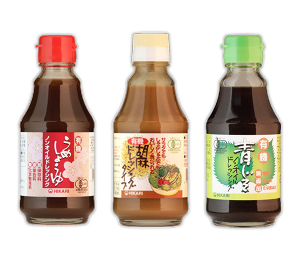- 有機 ドレッシング3種類(うめしょうゆ(200ml)胡麻(225g)青じそ(200ml))★オーガニック★無化学調味料★サラダにもしゃぶしゃぶにも♪