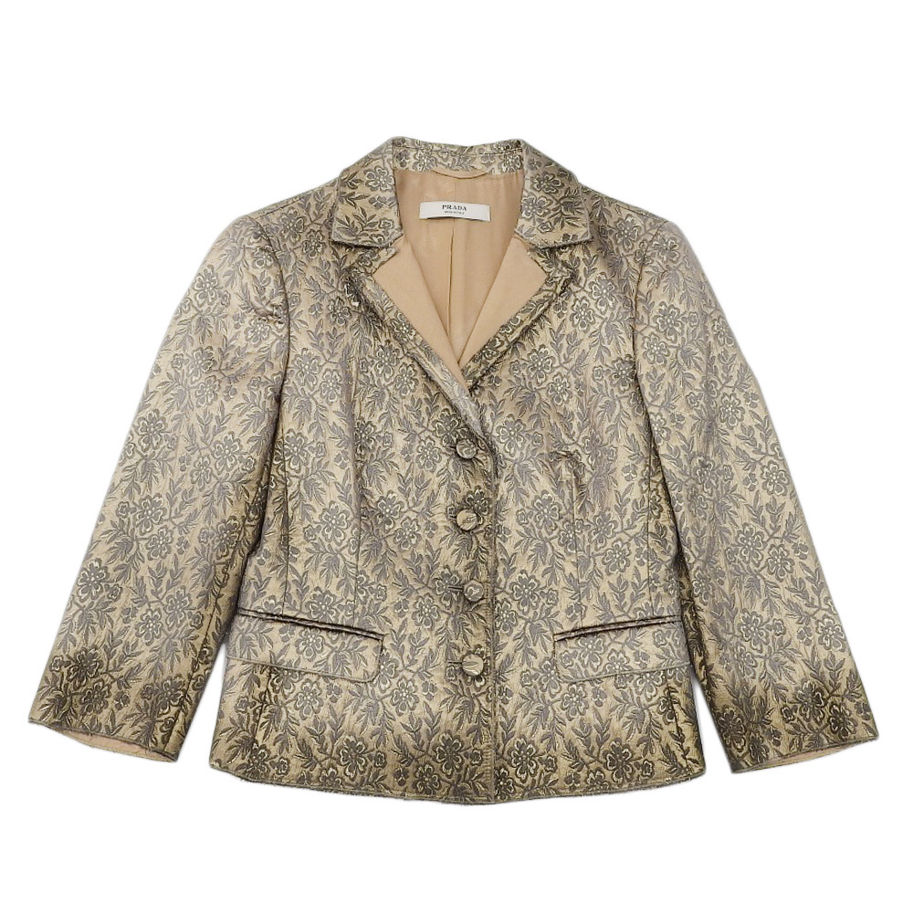 - PRADA プラダ 総柄刺繍 ジャケット レディース シルク混 ゴールド系 40 00's オールド