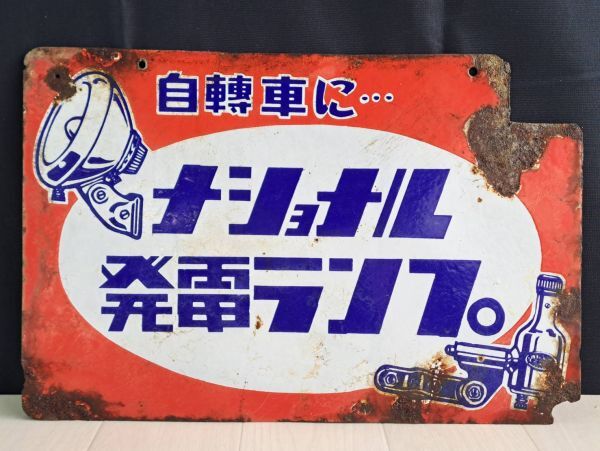 - ホーロー看板 National ナショナル 発電ランプ 両面看板 当時もの 昭和レトロ アンティーク