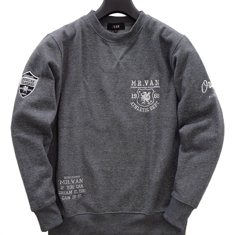 - 新品 ミスターヴァン 24秋冬 裏起毛 4連ロゴ スウェット M 灰【va1744056_198】 MR.VAN メンズ トレーナー クルーネック スエット 綿混