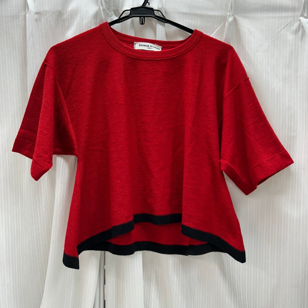 > &M& SONIA RYKIEL ソニアリキエル サマー ニット イタリア製 赤 レッド 38 トップス 半袖 服 レディース ファッション 中古品 &H-250514