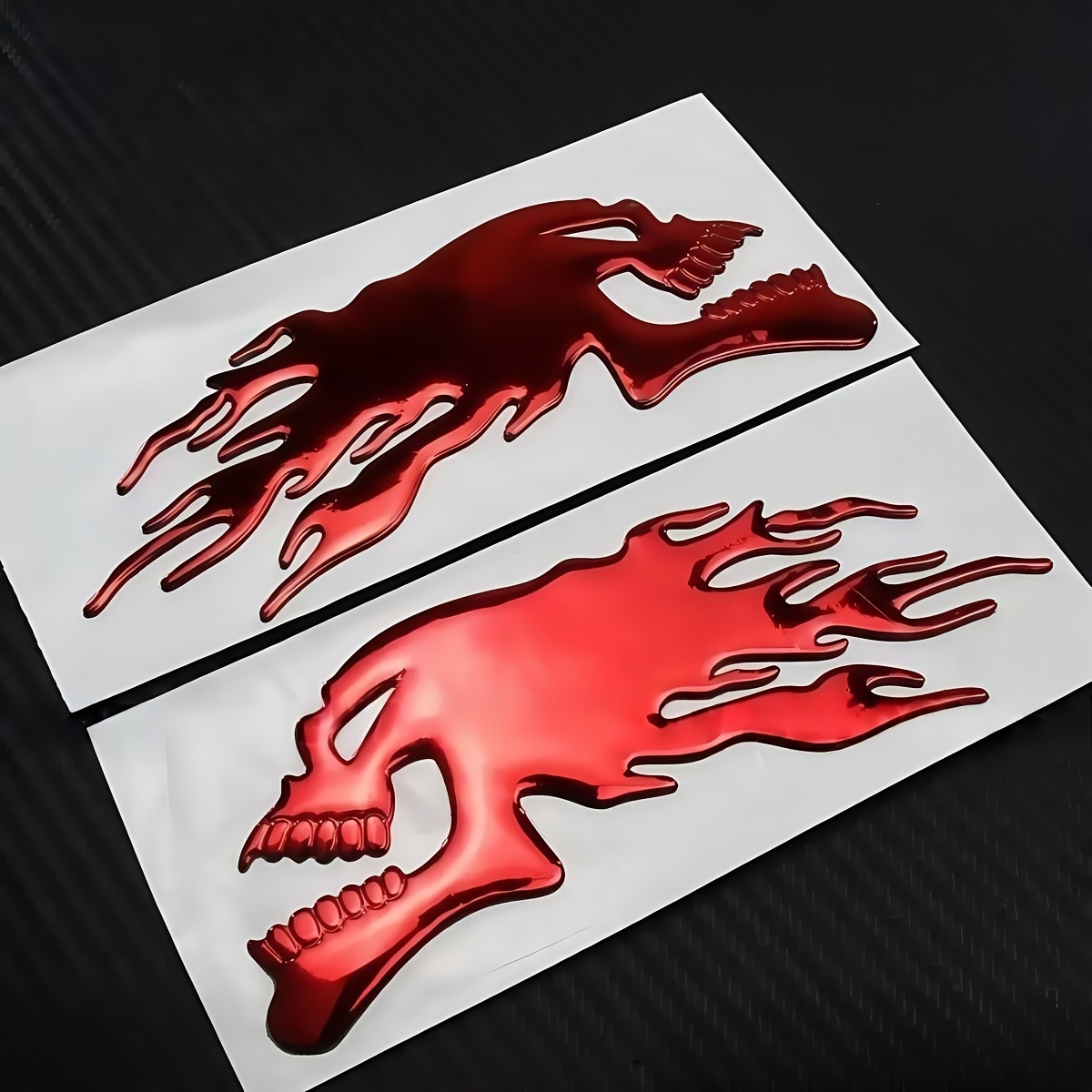 > 2個セット ステッカー がいこつ 頭 立体 プラスチック 車 3D 貼り付け シール スカル 14cm ドクロ レッド 赤 バイク オートバイ 外装 t6411