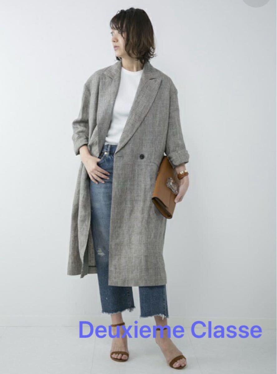 > 極美品 Deuxieme Classe グレンチェックコート リネン100% 麻 ドゥーズィエムクラス Glen Check coat