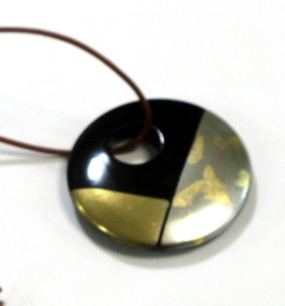 - ★艶やかな漆の美★会津塗 木製漆塗 ネックレス 描き分け箔蒔絵 ★手描き蒔絵★送料無料