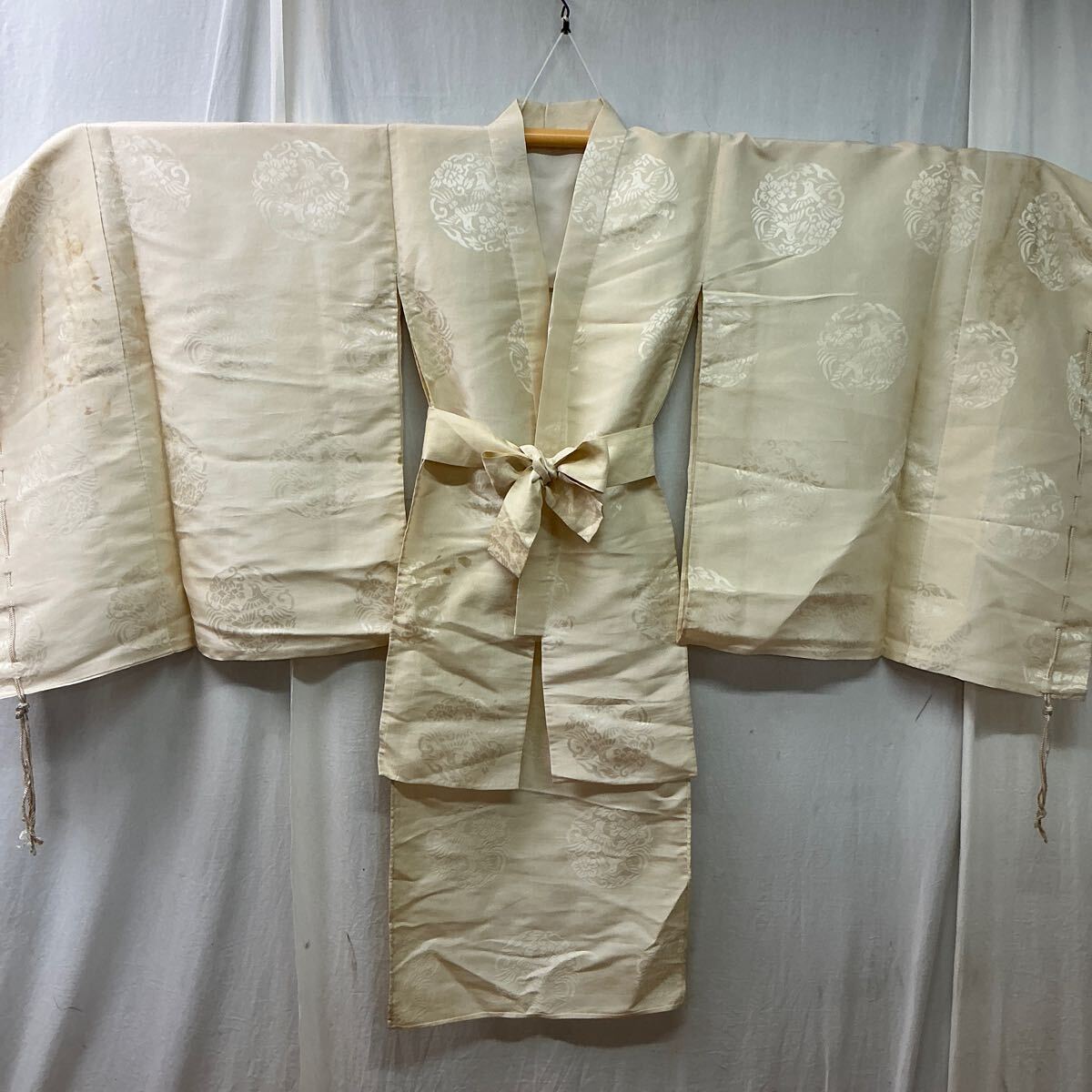 - 【B144】送無 神道 上衣 絹 色無地 花鳥紋 白色 法衣 法要 装束 着物 僧侶 社寺 神社 お坊さん