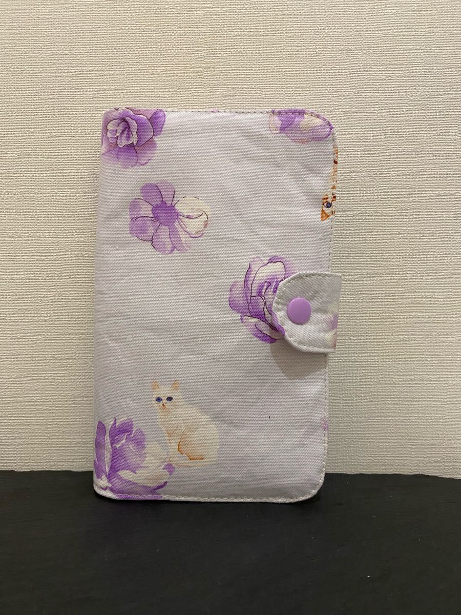 - ☆ハンドメイド ☆マルチケース お薬手帳入れ 通帳入れ 母子手帳入れ プレゼント 猫 ねこ ネコ 花 ベビーパープル