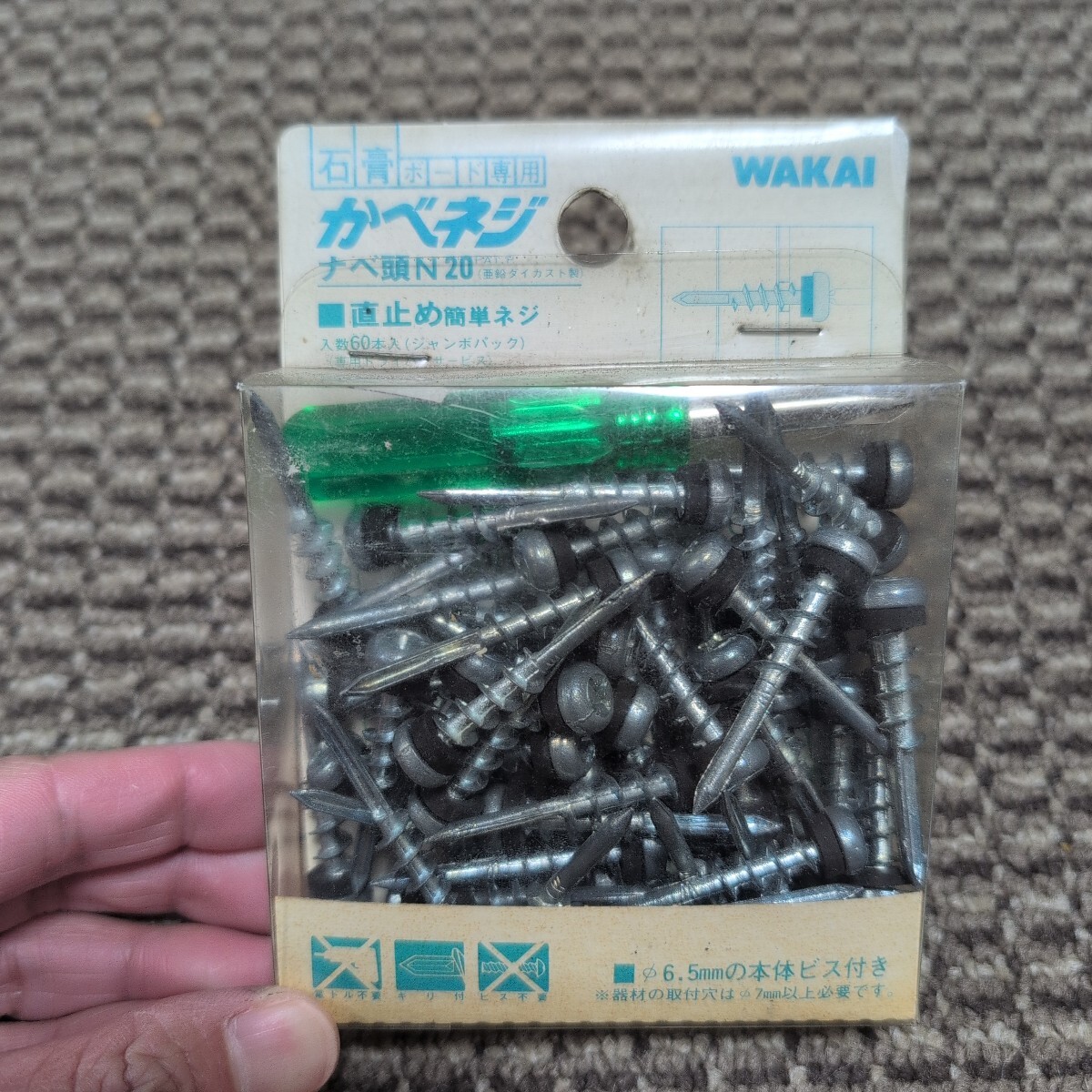 > ジャンク品/長期保管品/WAKAI/若井産業/かべネジ/石膏ボード用/ボードネジ/軽量物用/なべ頭Φ6.5mm/1P60本入り/専用ドライバー付き