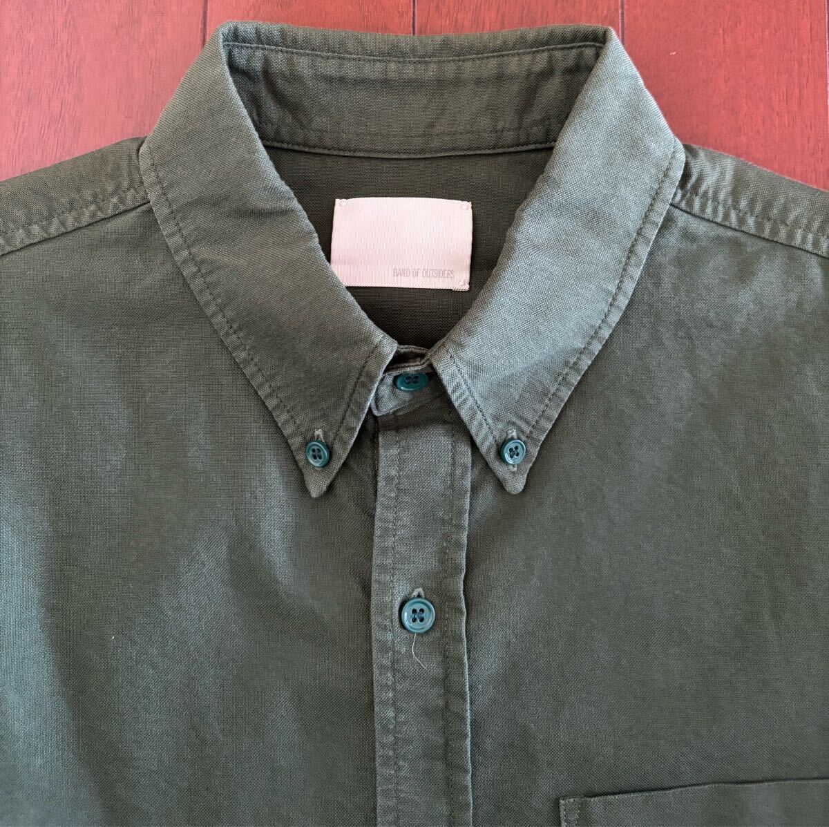 > BAND OF OUTSIDERS メンズオックスフォードシャツ グリーン色 サイズ2 Mサイズ 長袖ボタンダウンシャツ MADE IN USA