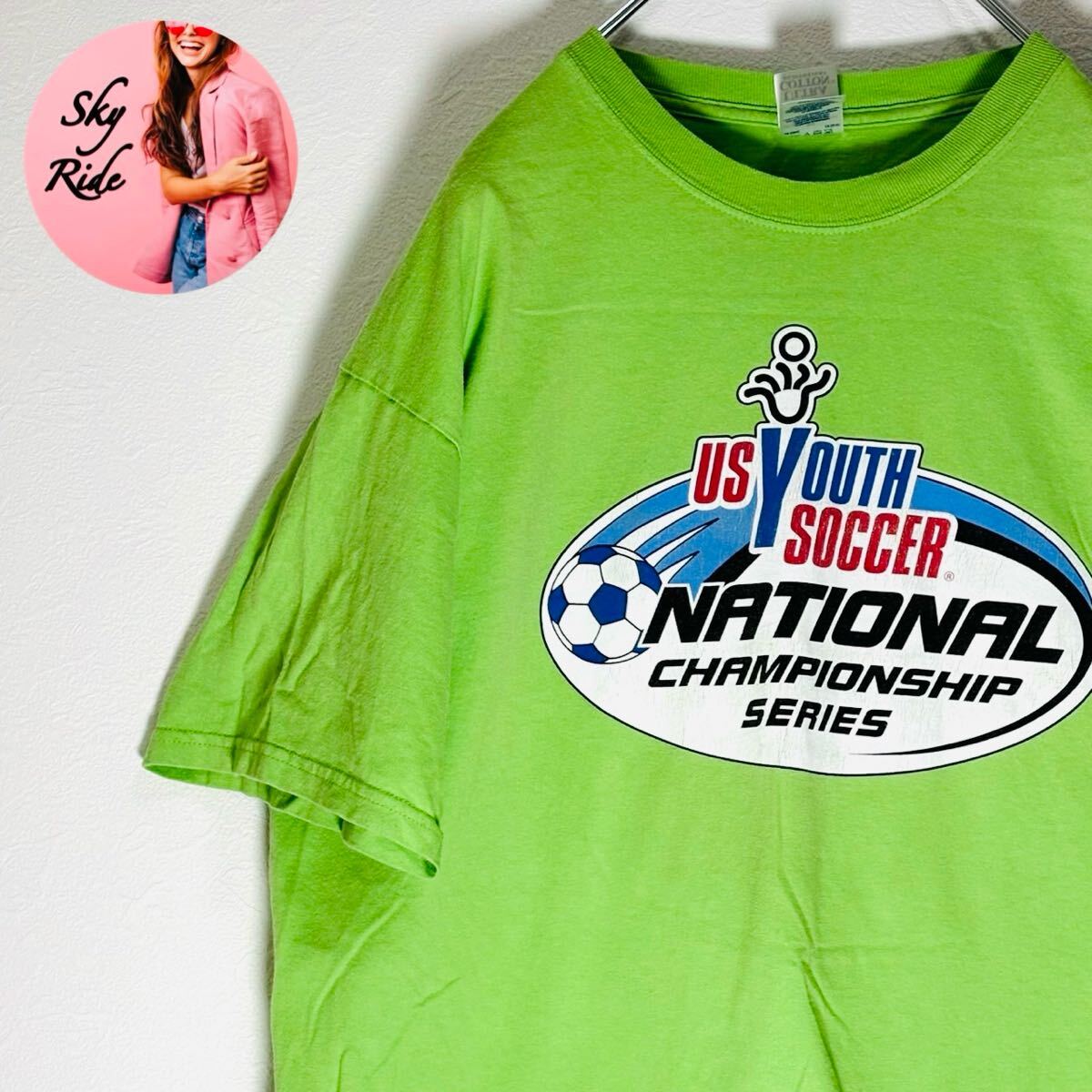 > GILDAN ギルダン US Youth Soccer メンズ 両面ビッグプリント 00s Tシャツ グリーン XL 古着 #SB0148