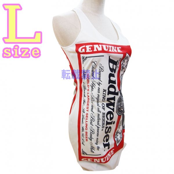 - 【高品質プリント 伸縮可能 送料無料】バドワイザーバドガールクルーワンピース コスプレ 白色 L ホワイト 新品未使用