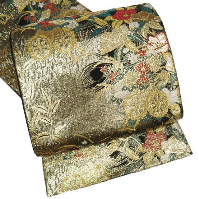 - 袋帯 中古 リサイクル 正絹 フォーマル 仕立て上がり 六通 花車模様 箔糸 多色 金 きもの北條 A1191-16