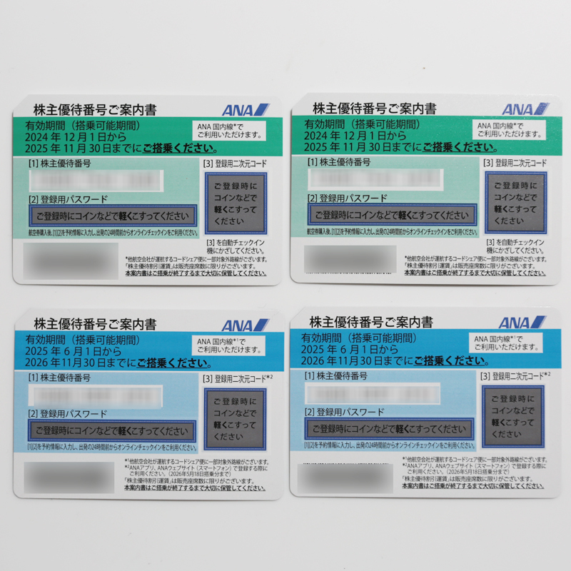 - 全日空 株主優待券 4枚1組 有効期間2024年12月01日~2025年11月30日2枚と2025年6月01~2026年11月30日2枚 郵送のみ