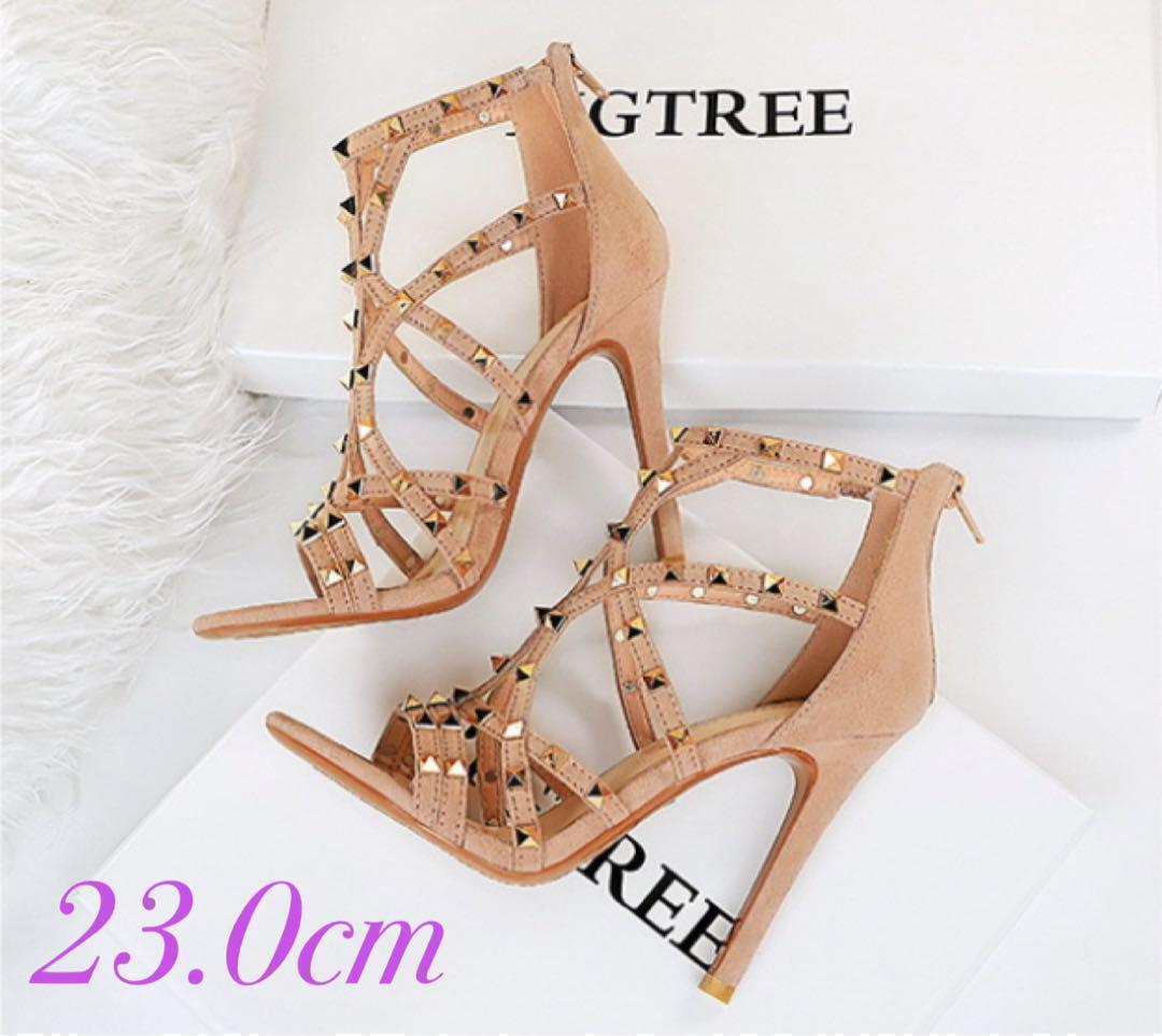 - レディース サンダル ハイヒール 美脚 スタッズストラップ