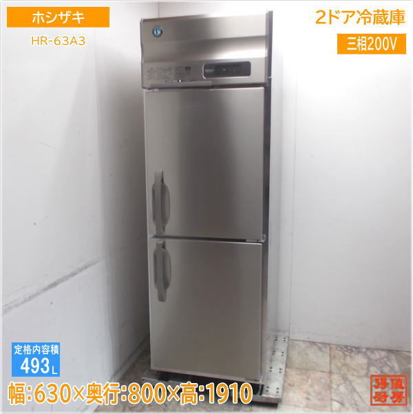 > ホシザキ 縦型2ドア冷蔵庫 HR-63A3 630×800×1910 中古厨房/25D3001Z