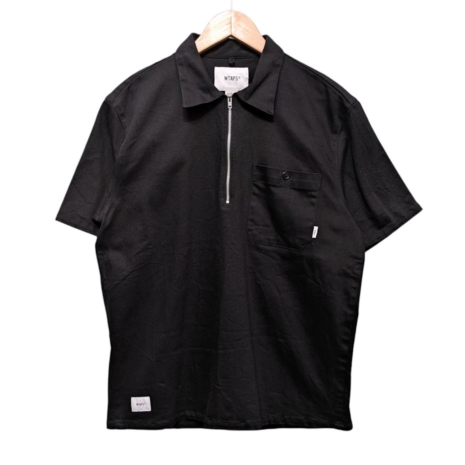 > WTAPS ダブルタップス コットンツイルハーフジップシャツ 半袖シャツ ワークシャツ ブラック 191GWDT-SHM03 サイズ 3