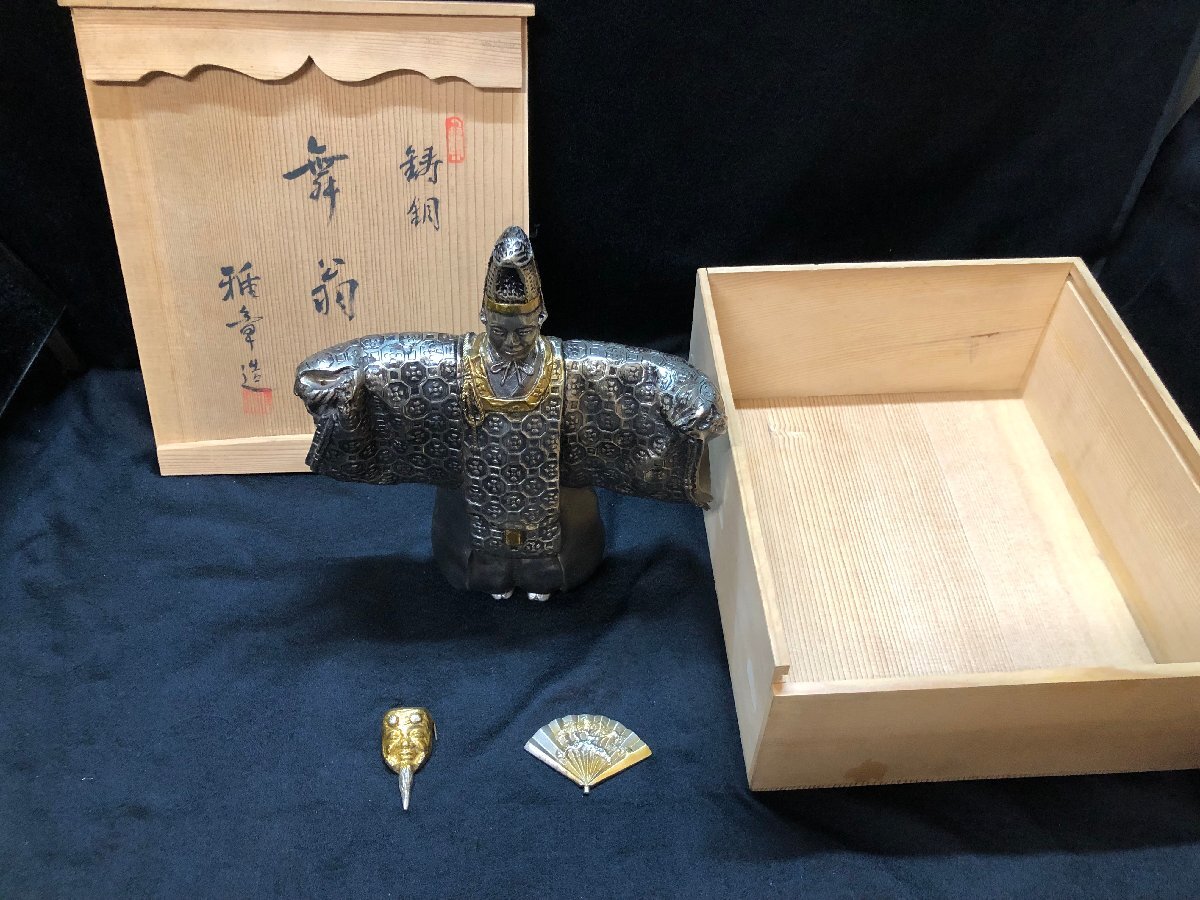 > 25B028 送料無料 逸品 金工師 雅章 造 在銘 鋳銅 「 舞翁 」 鋳銅 能面 約6.2㎏ 舞 オブジェ 美術品 骨董品 置物