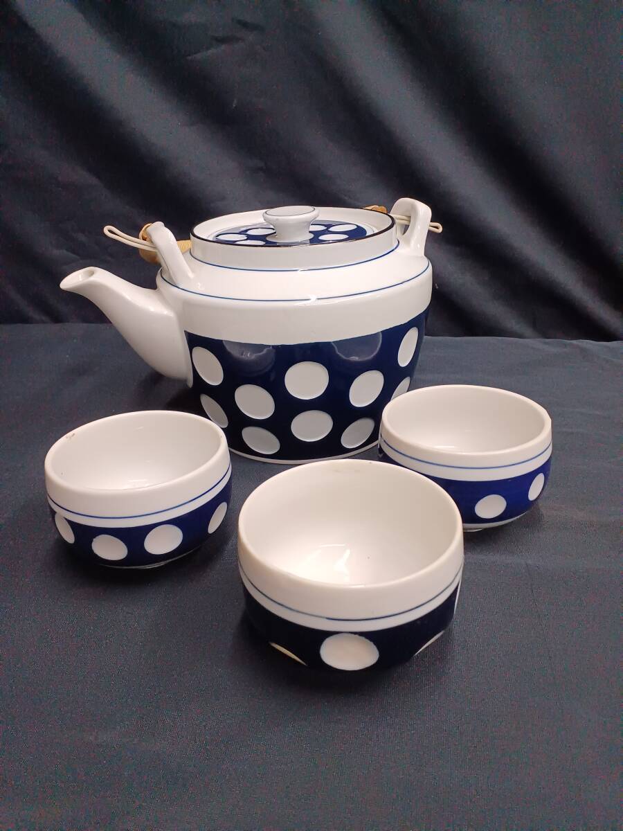 - 昭和レトロ 水玉急須8号?と湯呑3個のセット 中古