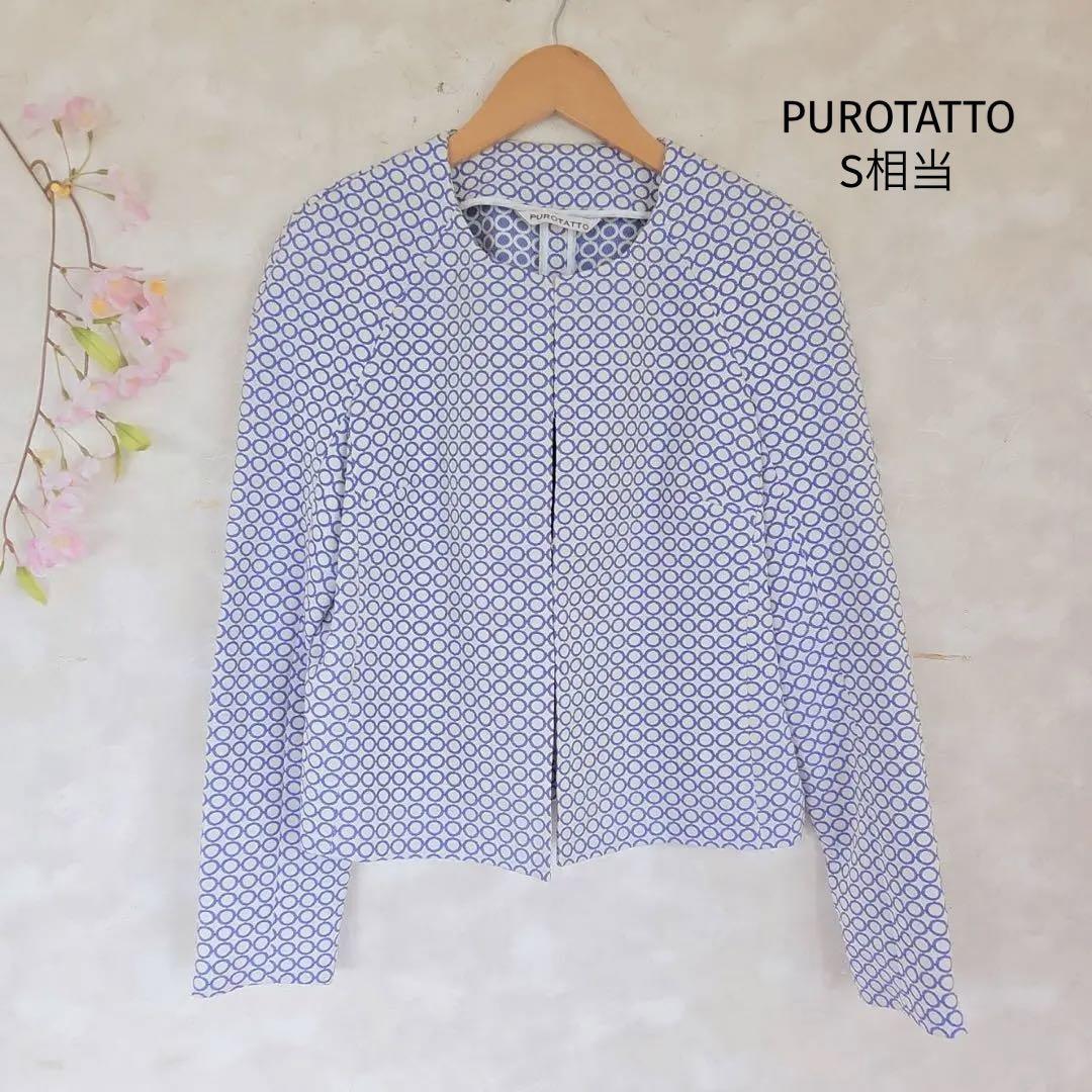- イタリア製 PUROTATTO ノーカラージャケット【S相当】総柄 青×白