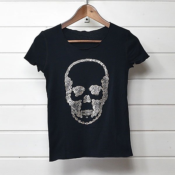 - lucien pellat-finet ルシアン ペラフィネ カットソー ラインストーン ドクロ Tシャツ ブラック 半袖 XS|25c2562