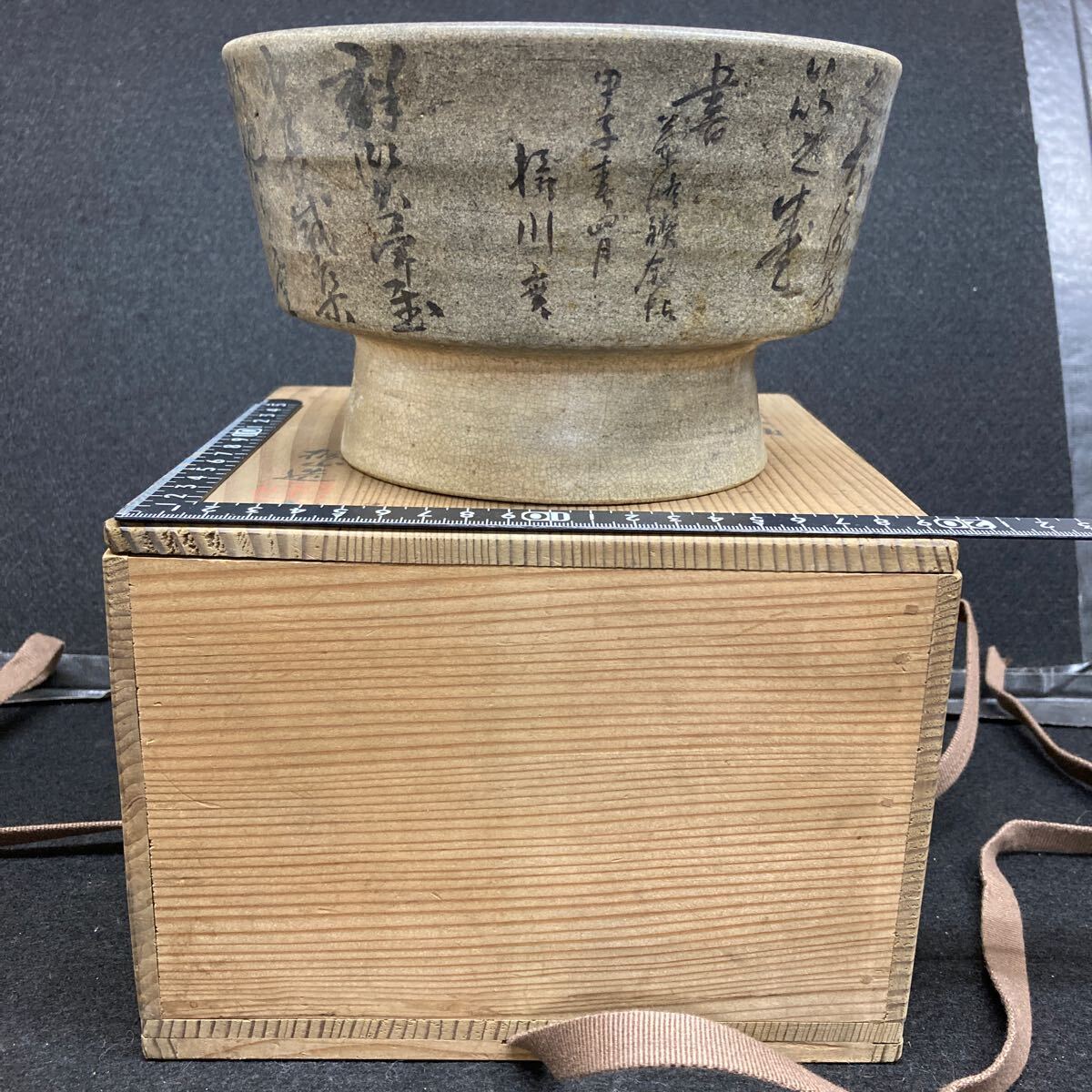 > 琴浦窯 和田桐山造(物故作家) 楽巌入釉 文字入り 菓子鉢 共箱付き アンテーク 径18センチ 高さ11センチ