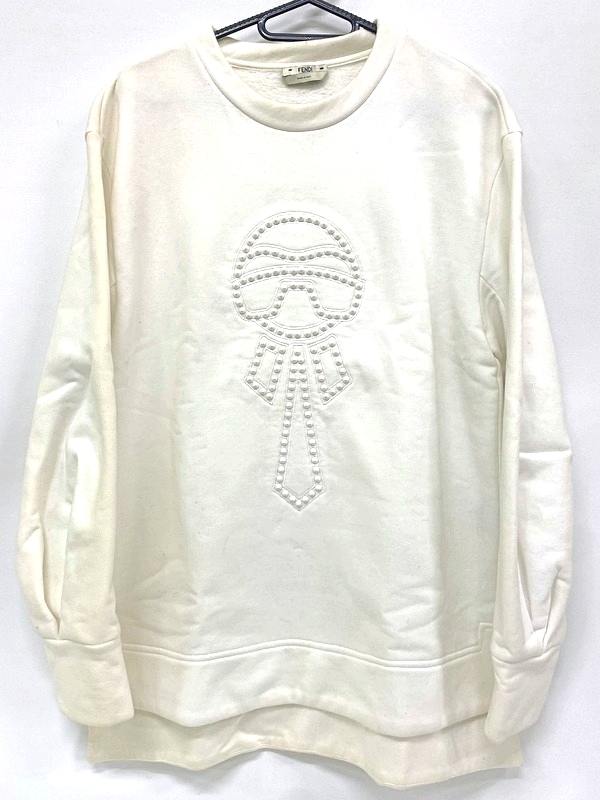 - 【即決/サイズ40】 FENDI トレーナー ホワイト スタッズ カール・ラガーフェルド コットン60% ポリエステル40% スウェット フェンディ
