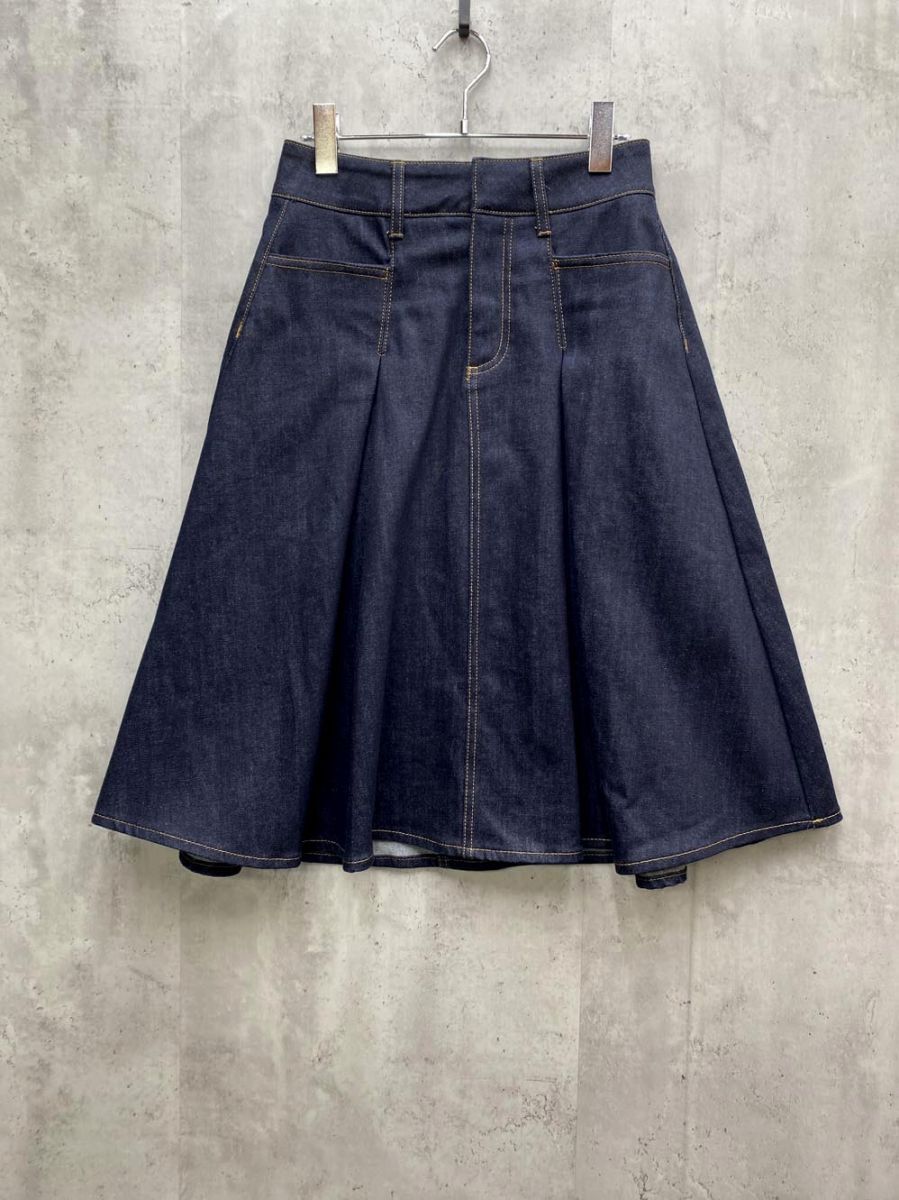 > ゆうパケットOK ZARA ザラ 5216/247/407 ZWコレクション デニムスカート ロング ハイウエスト プリーツ フレア sizeXS/紺 ■◇