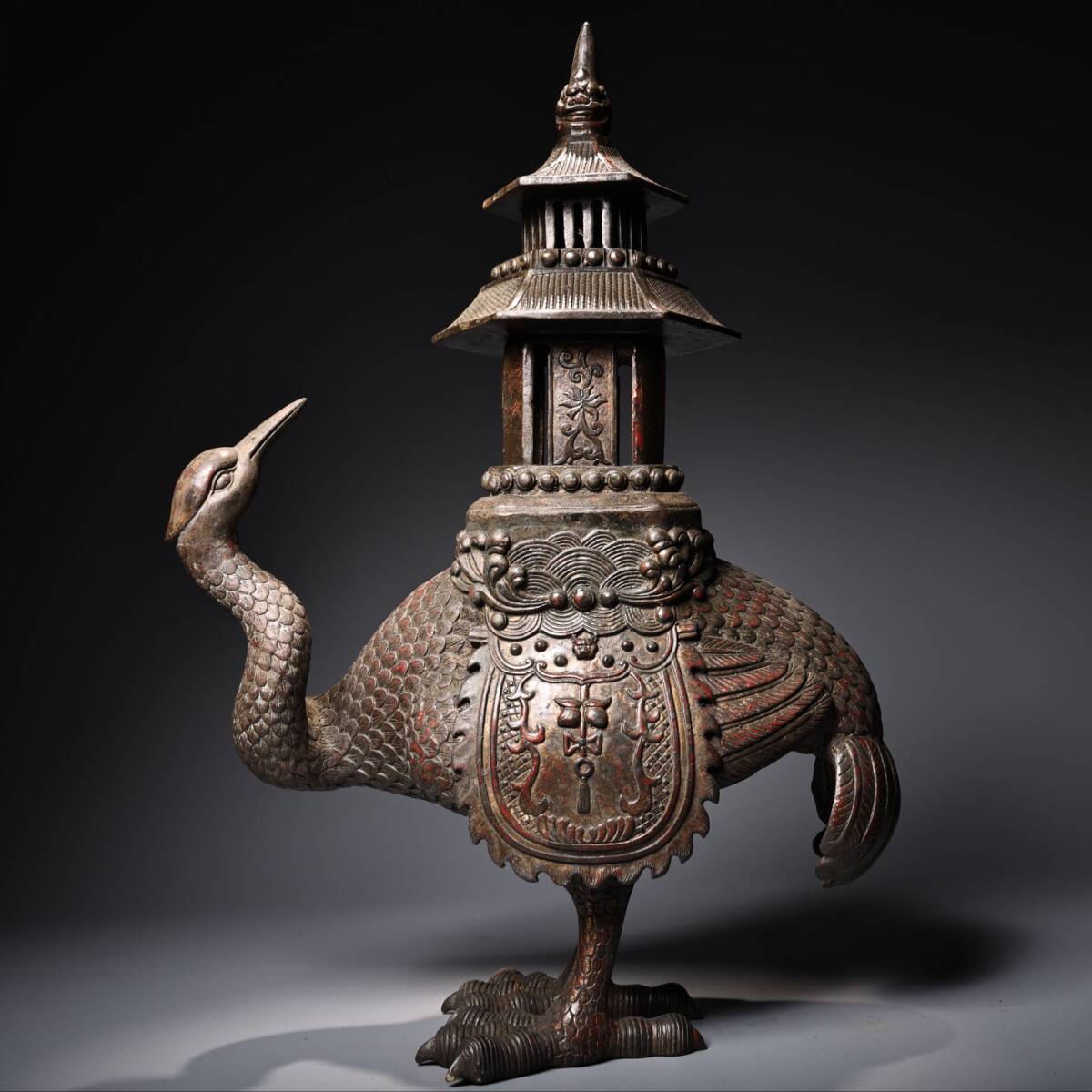 - 『館蔵珍品 銅製 泥金 鶴熏香炉』置物 賞物 貴重物品 収蔵品 中国古美術