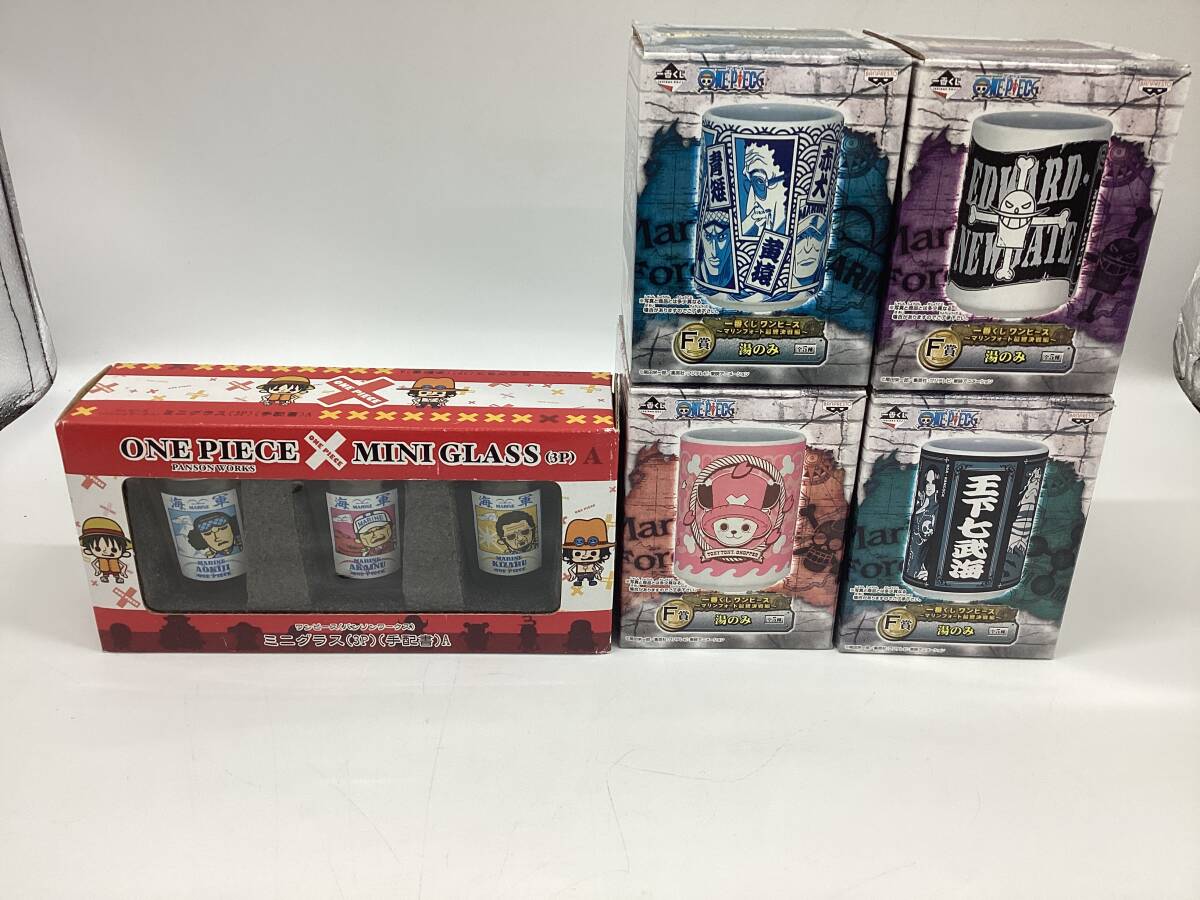 > 【6106I】未使用 保管品 ワンピース グッズ 5点 まとめ パンソンワークス ミニグラス 3P 手配書A 一番くじ 湯のみ マリンフォード最終決戦