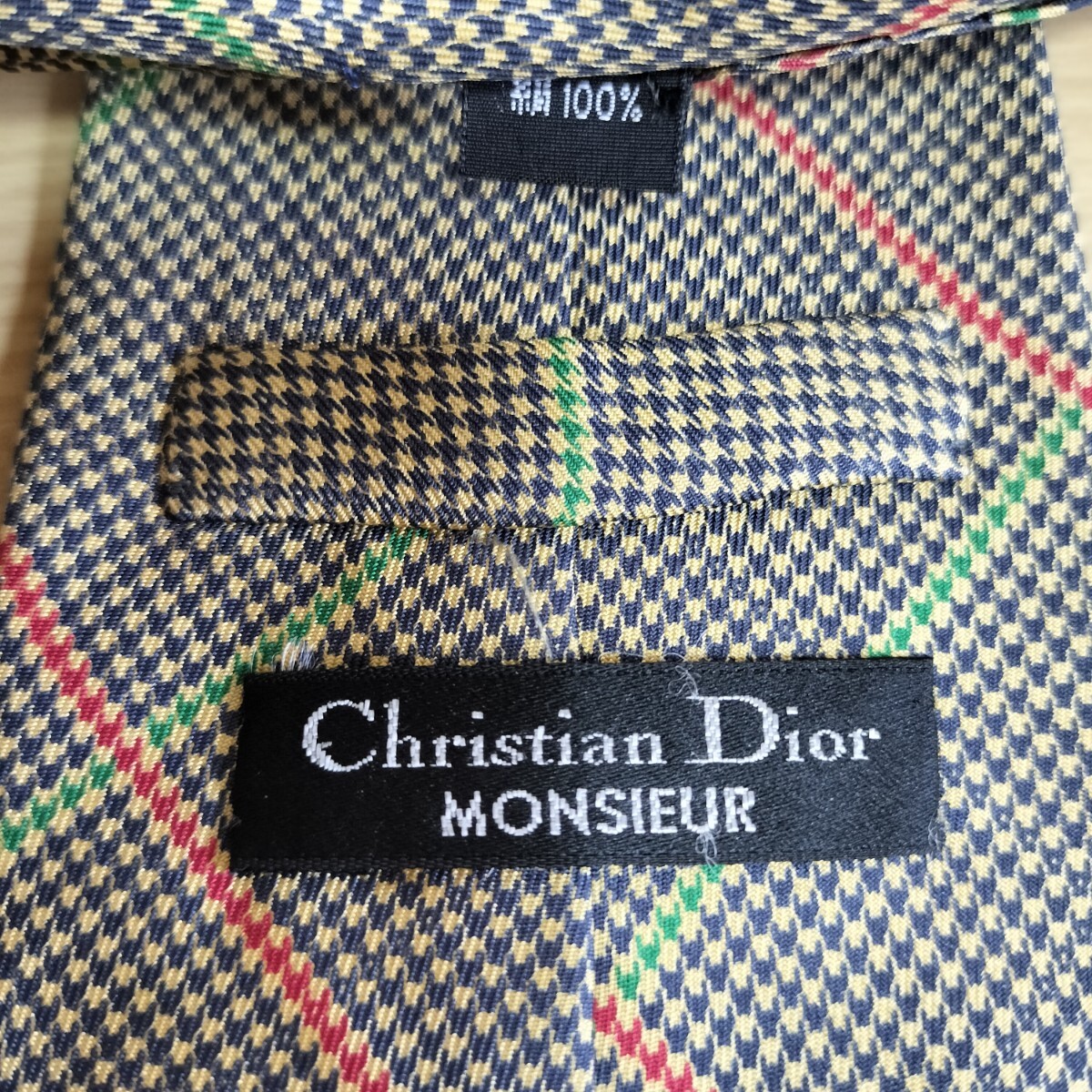 - Christian Dior(クリスチャンディオール)紺ベージュ赤緑線模様ネクタイ