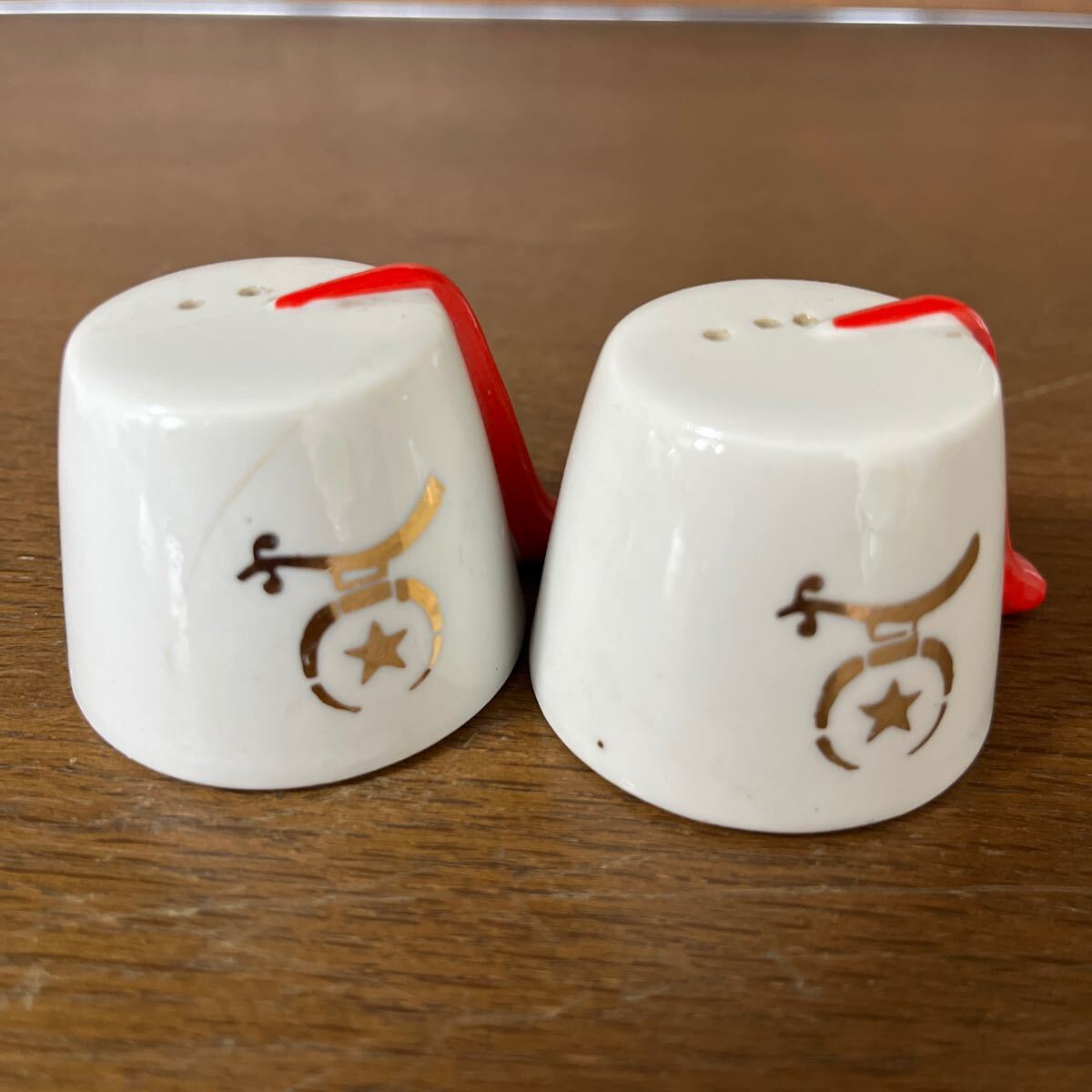 - V9 1950年代 シュライナー Japan製 ソルト & ペッパー 陶器 レア! フリーメイソン 50s アンティーク コレクティブル 日本製 USA雑貨