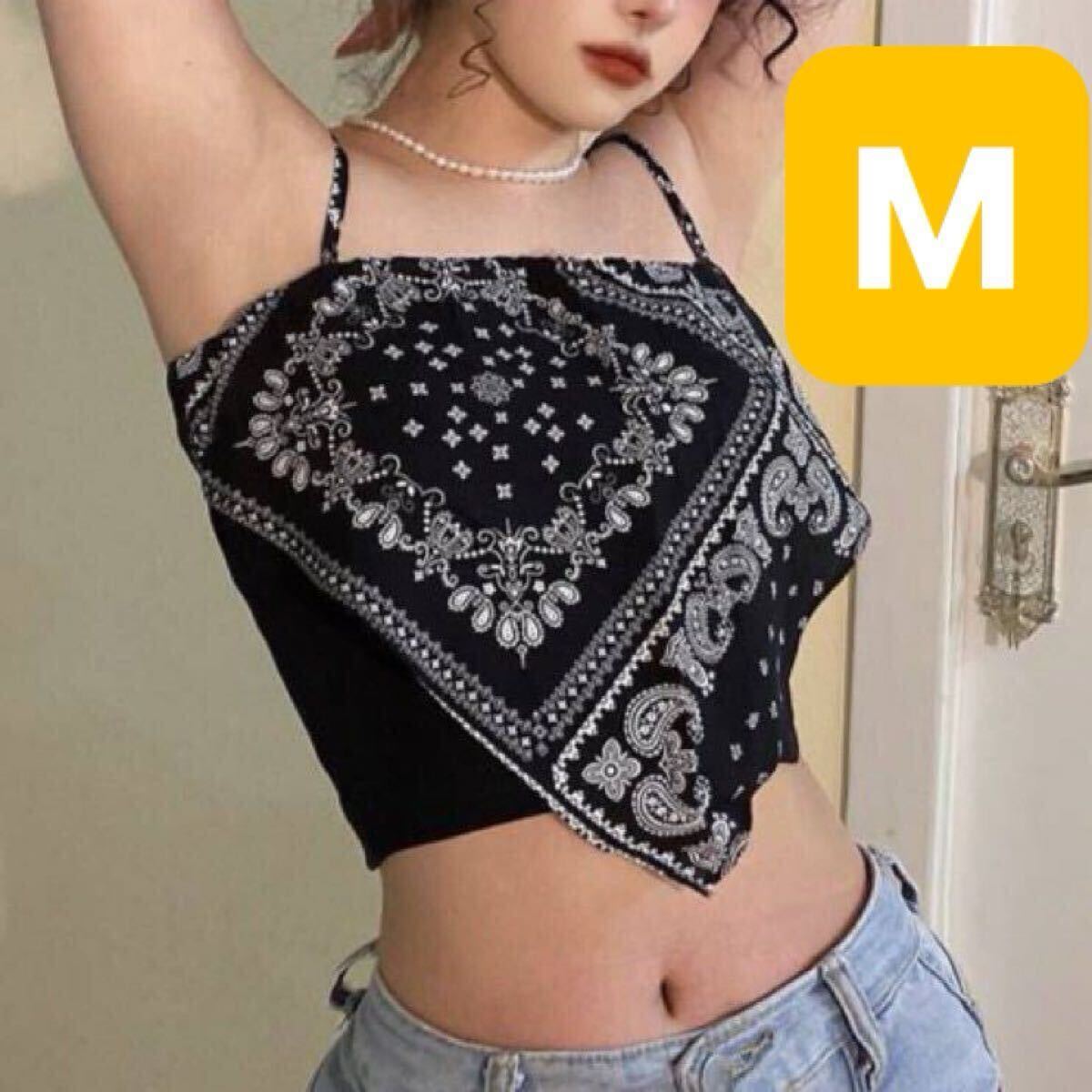> キャミソール ペイズリー柄 トップス ショート丈 大好評 トレンド セレブ 旅行 キャミ バケーション デート ビーチ プール 黒 ブラック M