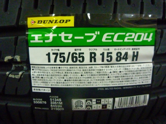 - 【送料無料】 夏タイヤ 2024年製 ダンロップ エナセーブEC204 175/65R15 4本セット税込¥41,800-