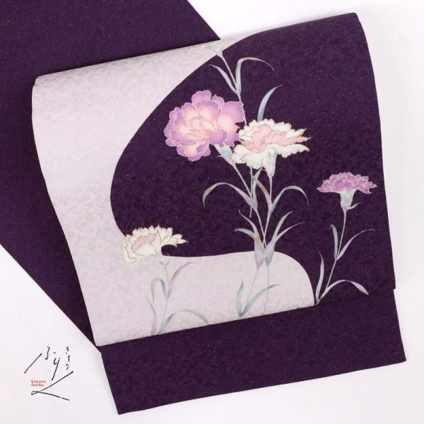 - 【袋帯】 華道家 『池坊美佳』 落款有 カーネーション 紫 正絹着物 レディース FP3-8