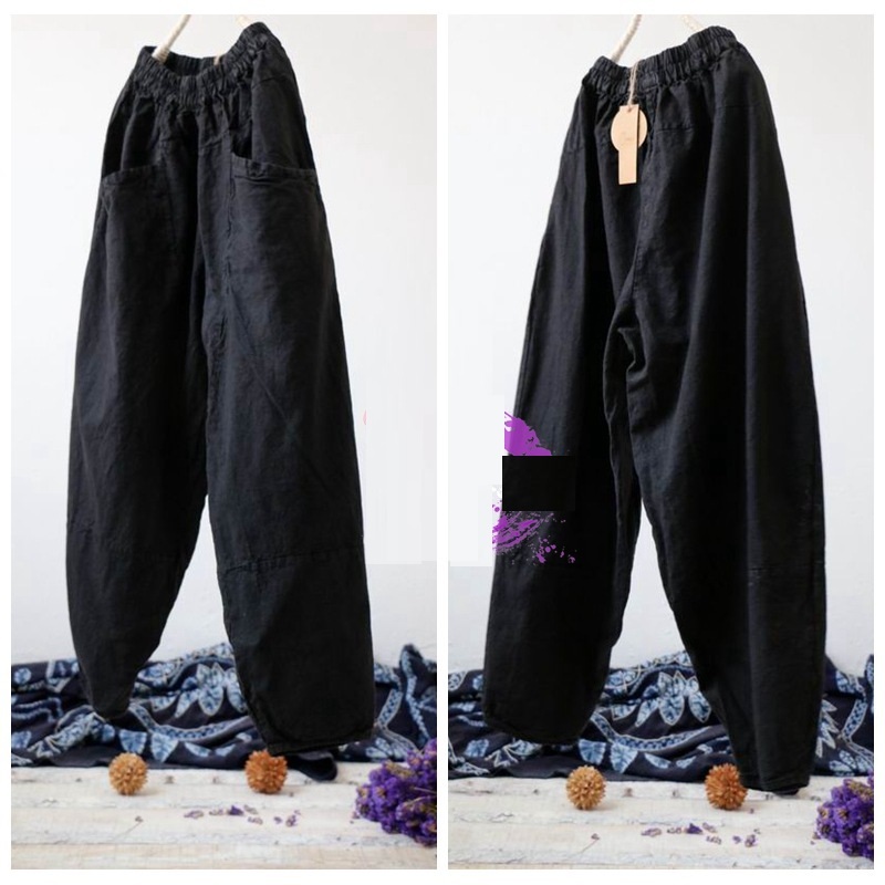 - 人気品ズボン パンツ 麻100% リネン アンティーク風 ストライプ柄 ロマンファッション ゆったり ブラックお色選択可
