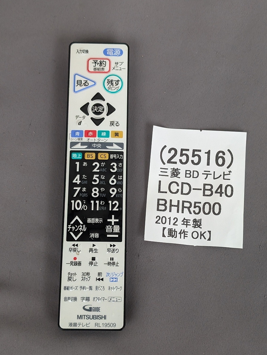 > 送料無料 送料込み 美品 動作OKのパーツ リモコン RL19509 液晶テレビ 三菱 LCD-B40BH500 LCD-40BH500