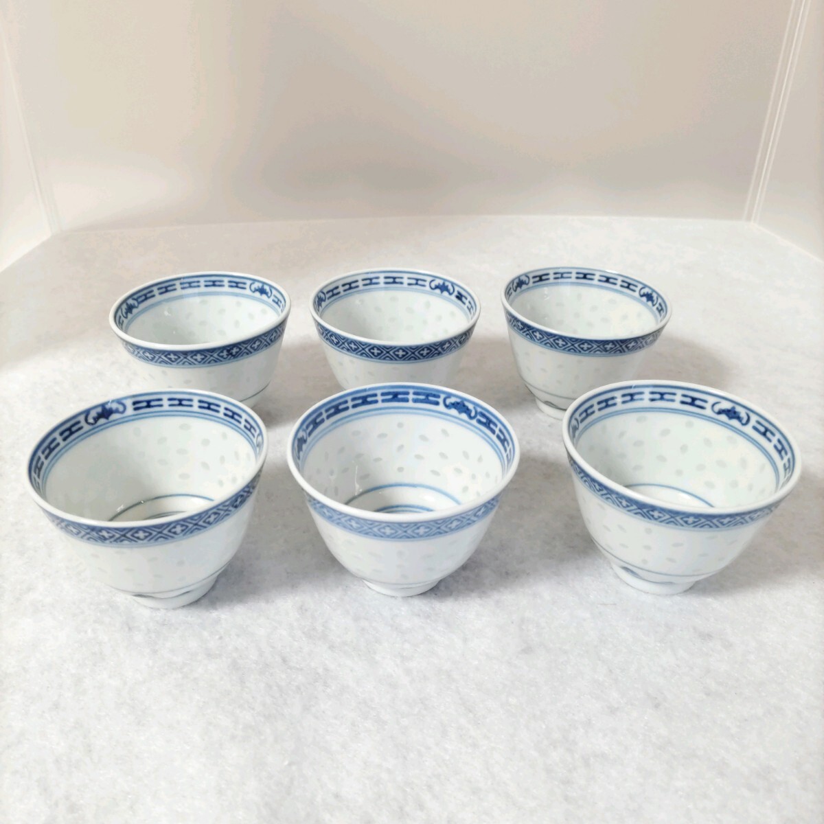 - 中国 景徳鎮 茶器 湯呑み ホタル 蛍 透かし 6個セット