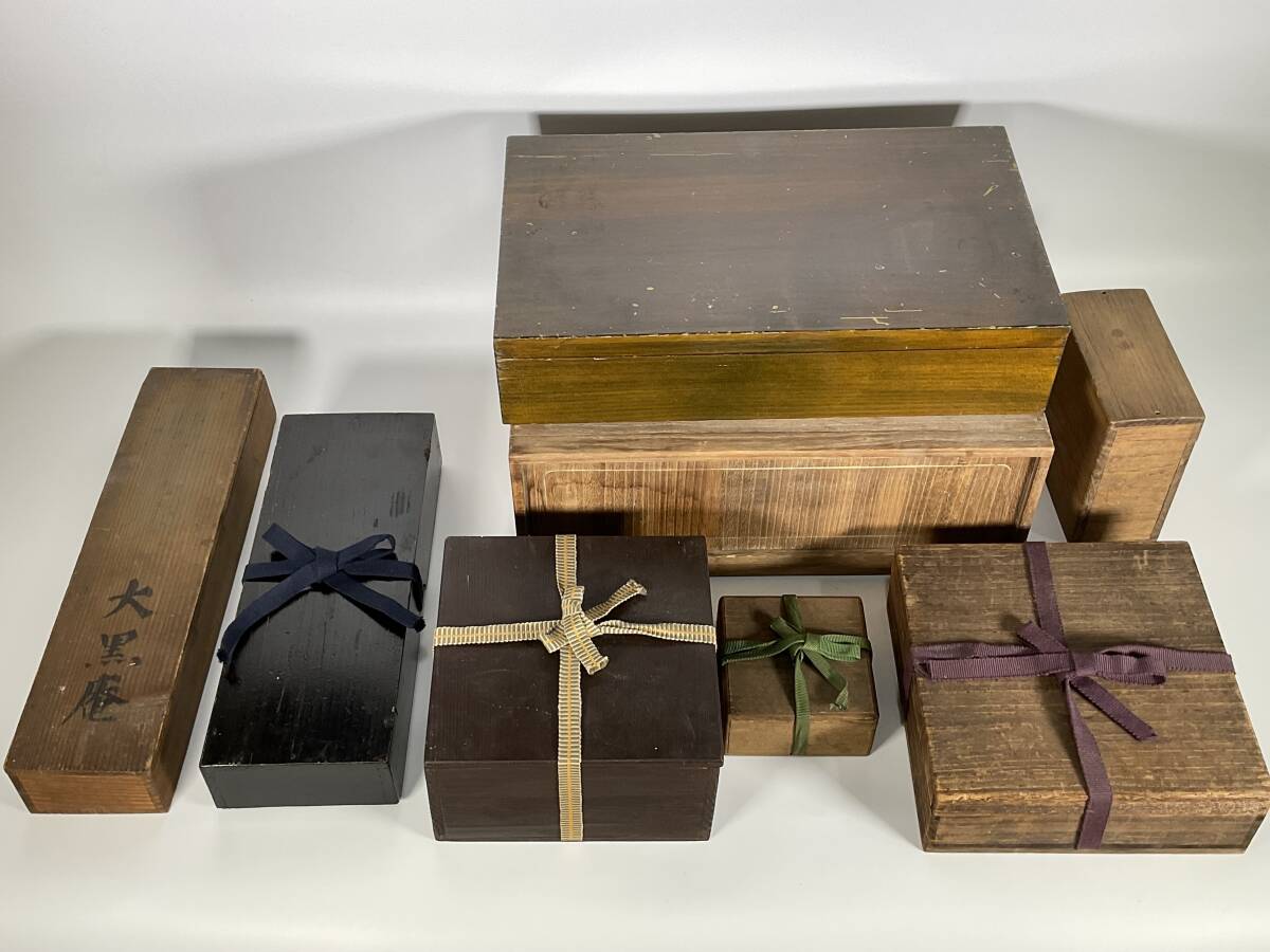 - 空き箱 まとめて8点 木箱 桐箱 文箱 茶碗・煎茶道具・盆栽鉢 古い箱