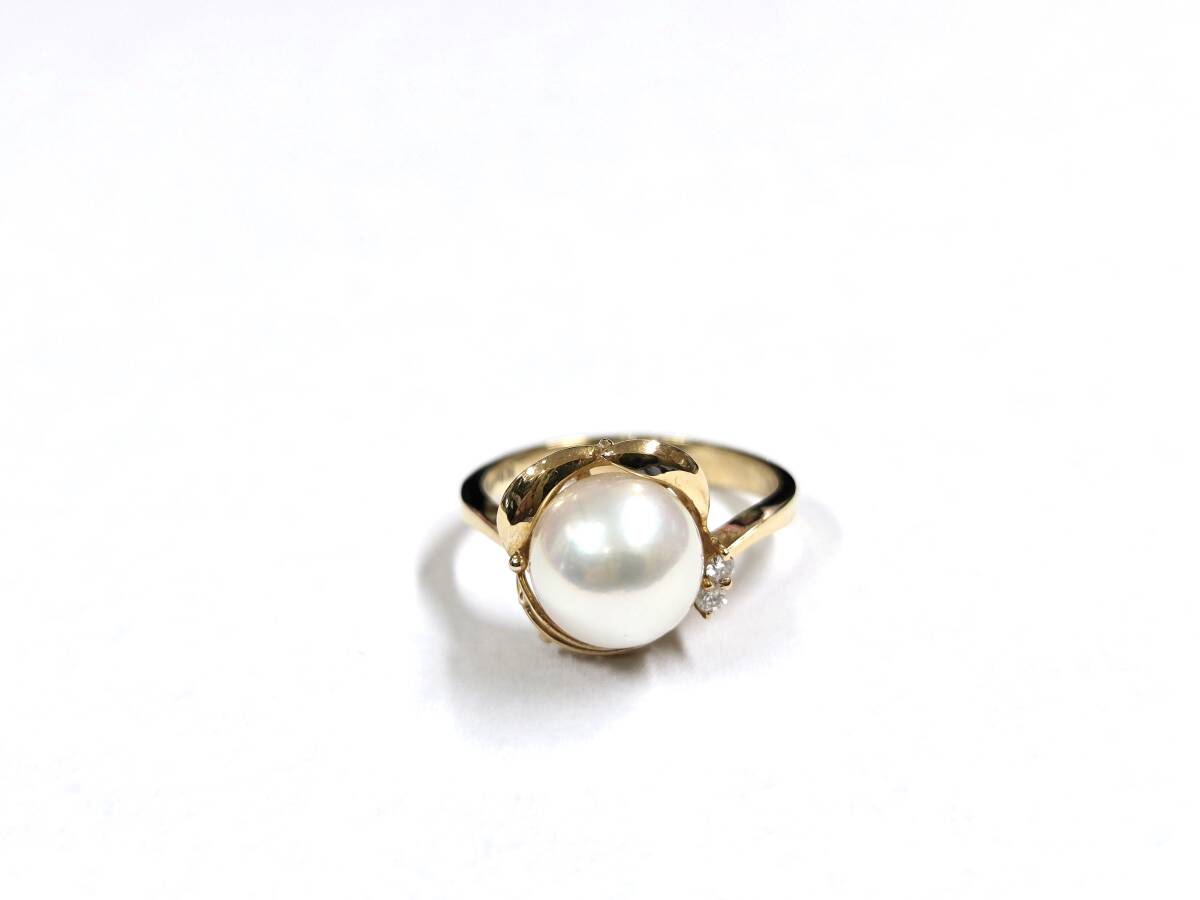 - K18 パール約9mm ダイヤ付き リング 9号 /R4380