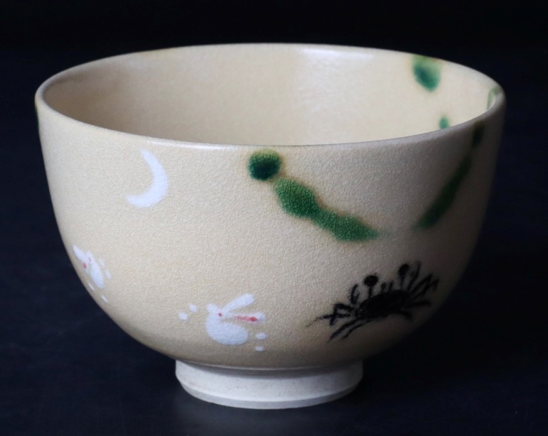 - 本物保証 北大路魯山人 月下兎蟹紋織部茶碗 大徳寺管長 小田雪窓識箱 共布 共箱 本物返品OK 250518−13
