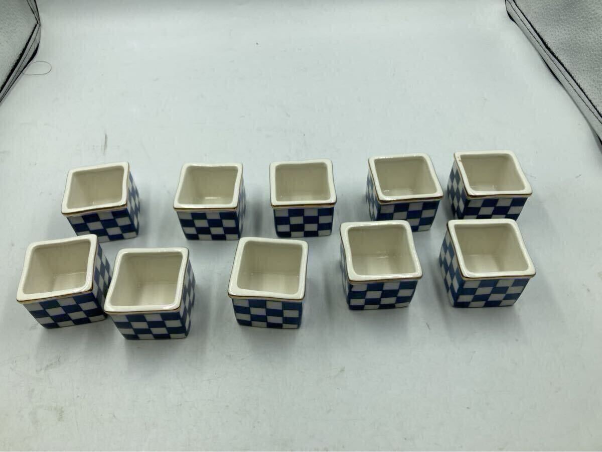 > 未使用 尾形乾山写 縁金 京焼 小鉢 市松 染付 10客の内 3客 の販売です 返品OK 250519−23
