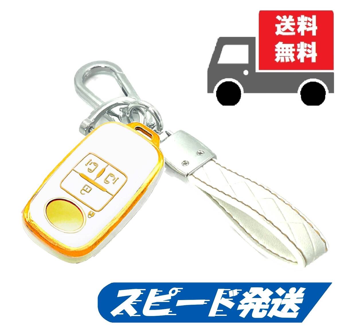 > 送料無料★キーホルダー付★ダイハツ★キーケース キーカバー★両側スライド★ホワイト4ボタン★Aタイプ