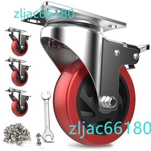 > 4インチ キャスター 4個セット 車輪 ブレーキ付き 高耐久性 単個耐荷重175kg 360度回転 静音 DIY家具交換キット ホイール径100mm 赤