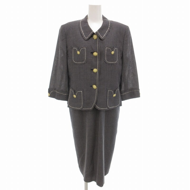- レリアン Leilian CLARIDGE アンサンブル 半袖ワンピース ジャケット 絹 シルク混 総柄 11 紺 ネイビー 白 ホワイト /TZ レディース