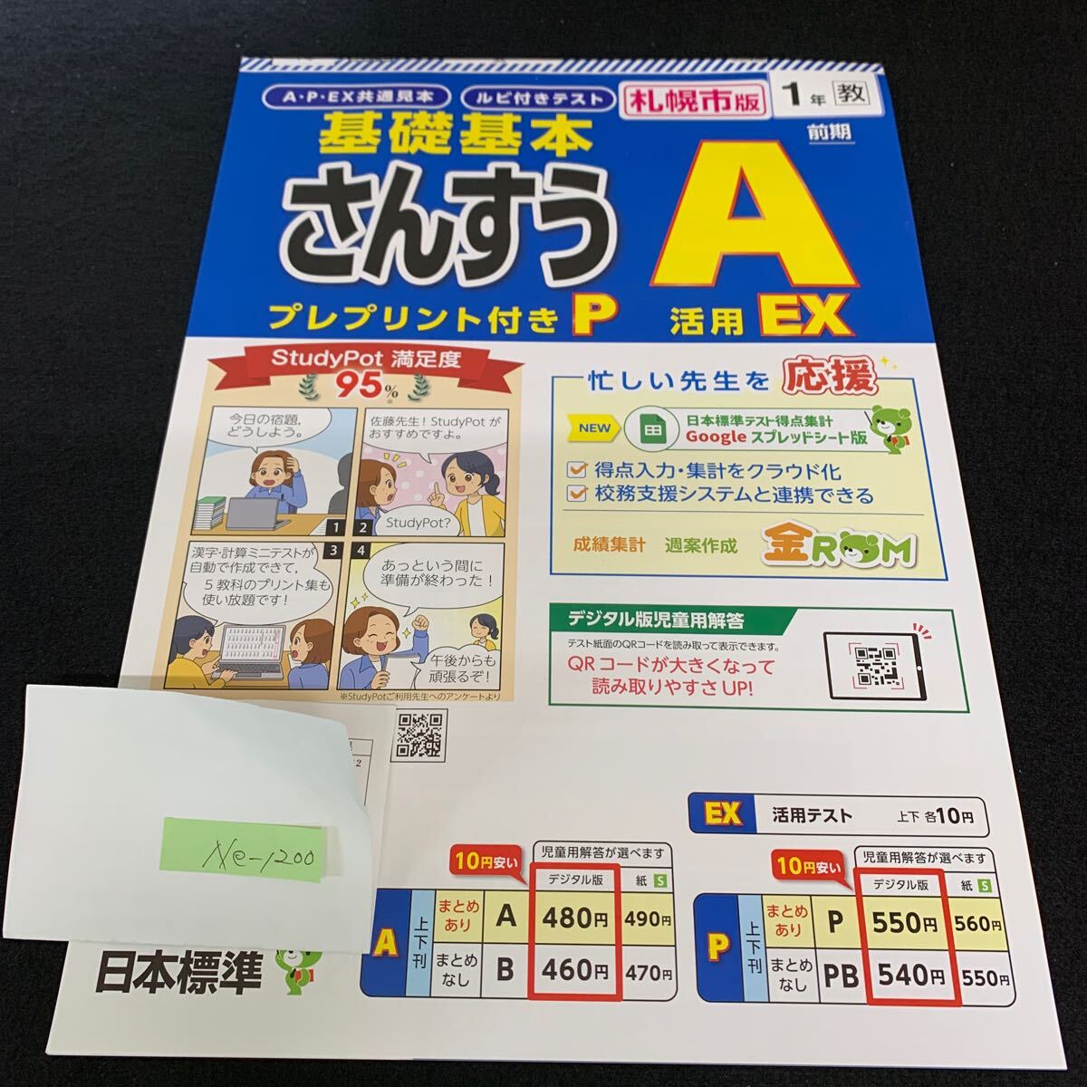 > Ne-1200/1年生/前期/札幌市版/日本標準/小学生 国語 算数 英語 社会 理科 漢字 家庭科 テキスト テスト用紙 教材 文章問題 計算/L7/705019