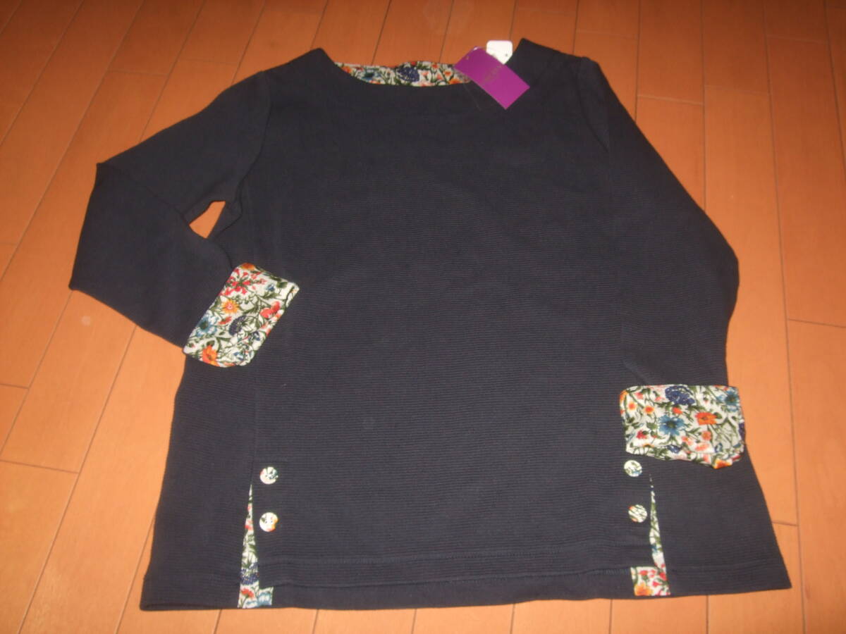 - 新品タグ付送料込即決☆Brillage リバティ生地ポイントデザイントップス☆ネイビー S